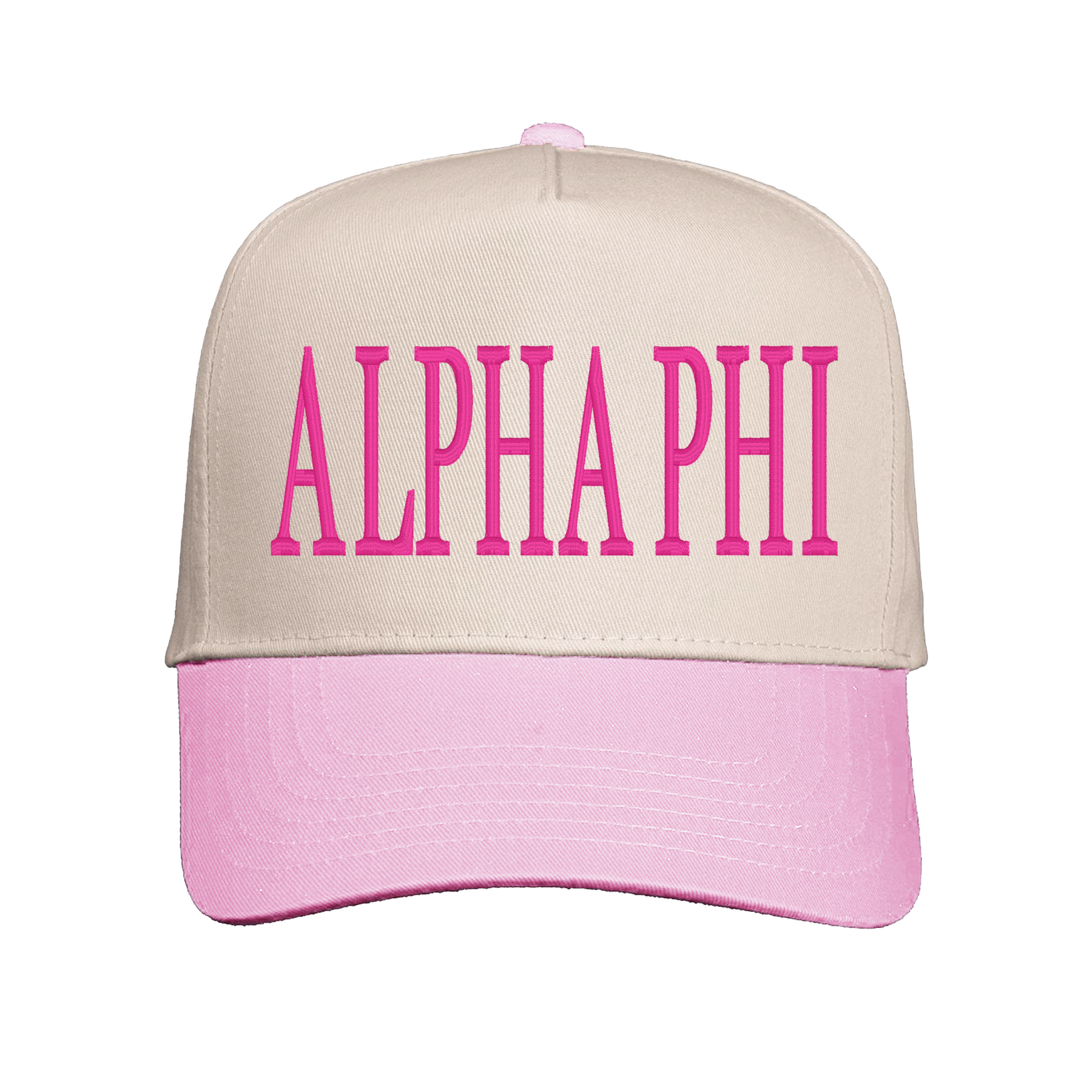 The Alpha Phi hat is a vintage two toned hat designed with style and comfort. Ideal for casual sorority wear or special events like bid day, big little reveal and more!