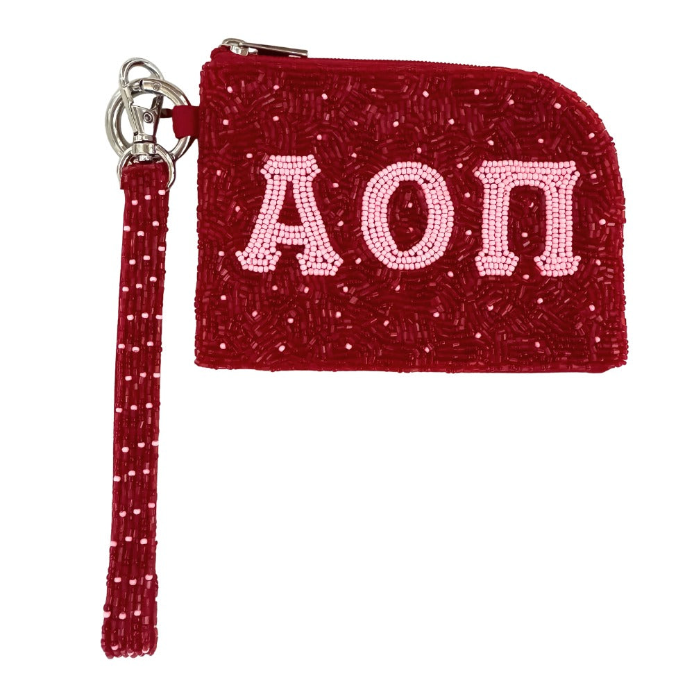 Alpha Omicron Pi Beaded Bracelet Bag – AOΠ Sorority Wristlet Pouch