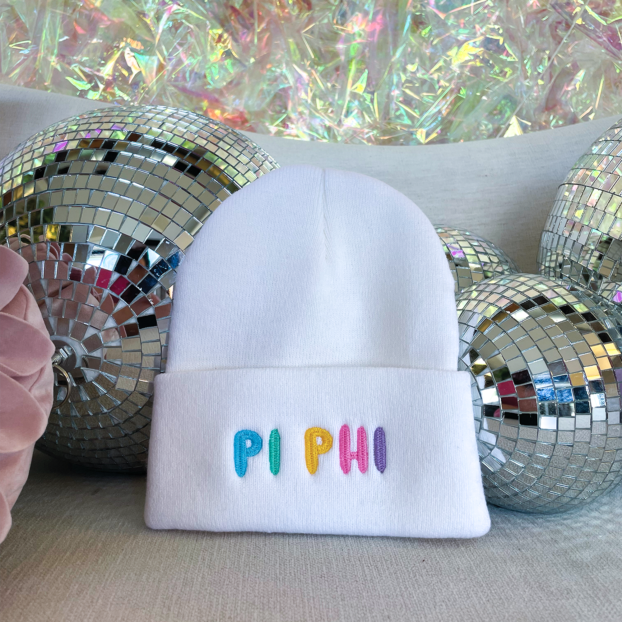 Pi Beta Phi Bubble Embroidered Beanie - Pi Phi Pastel