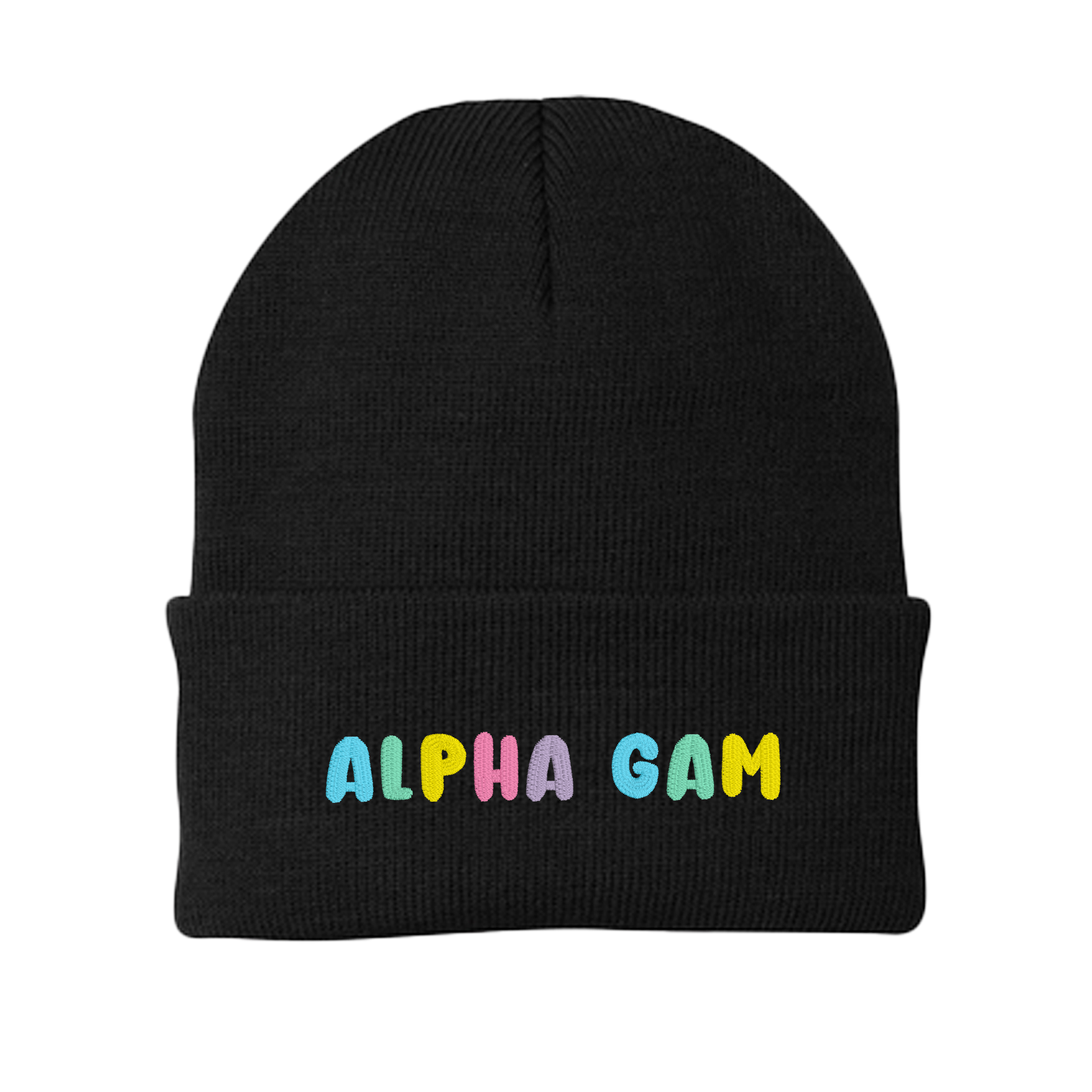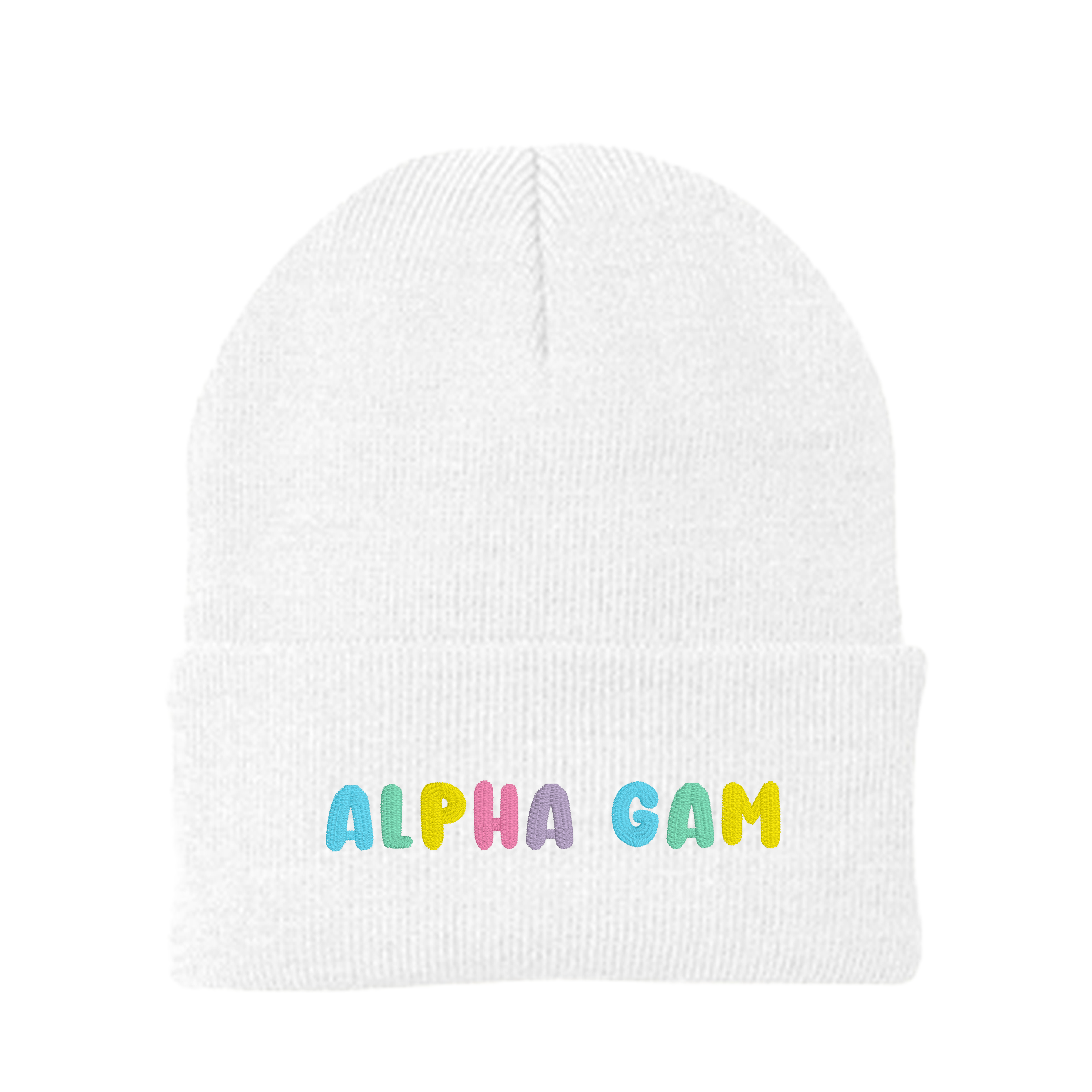 Alpha Gamma Delta Bubble Embroidered Beanie - Alpha Gam Pastel
