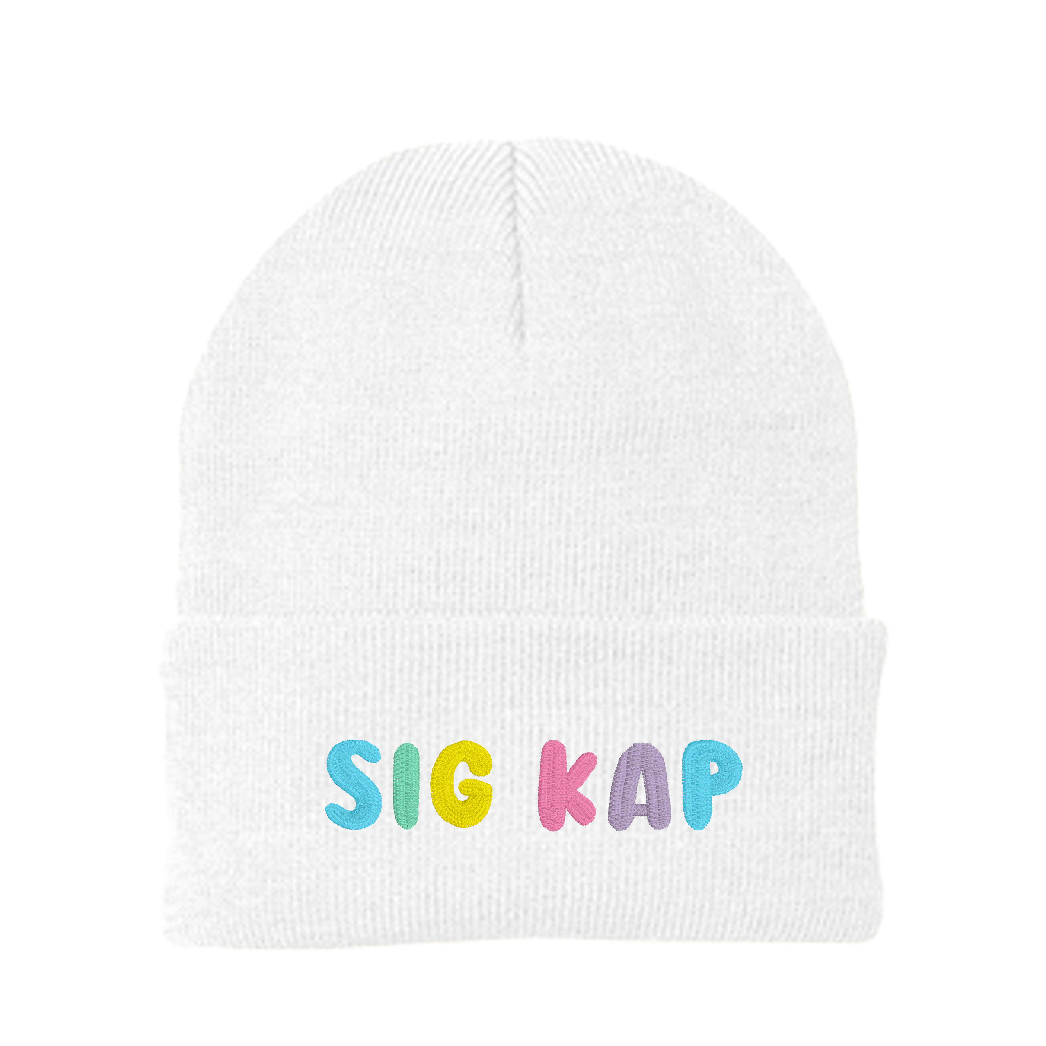 Sigma Kappa Bubble Embroidered Beanie - Sig Kap Pastel