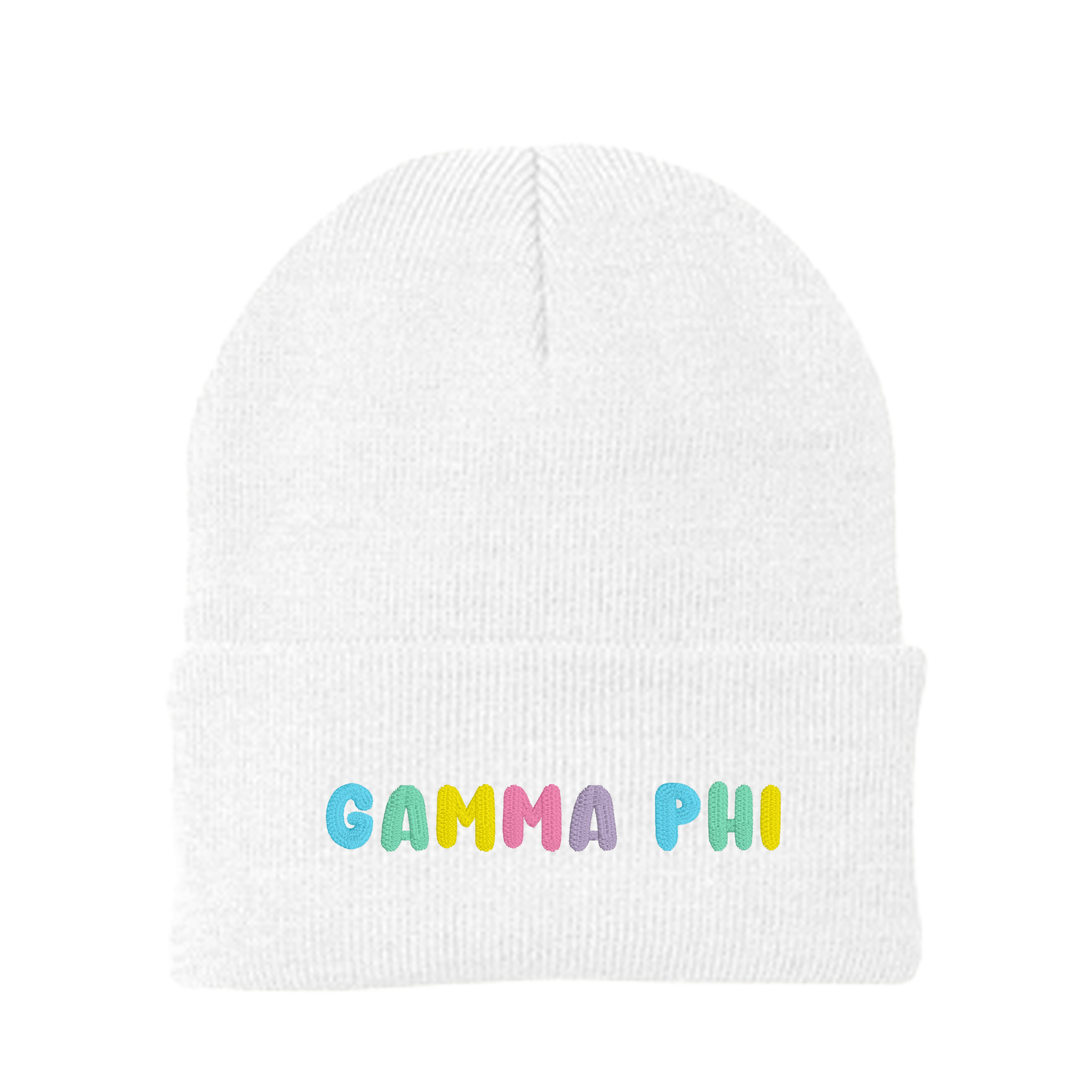 Gamma Phi Beta Bubble Embroidered Beanie - Gamma Phi Pastel