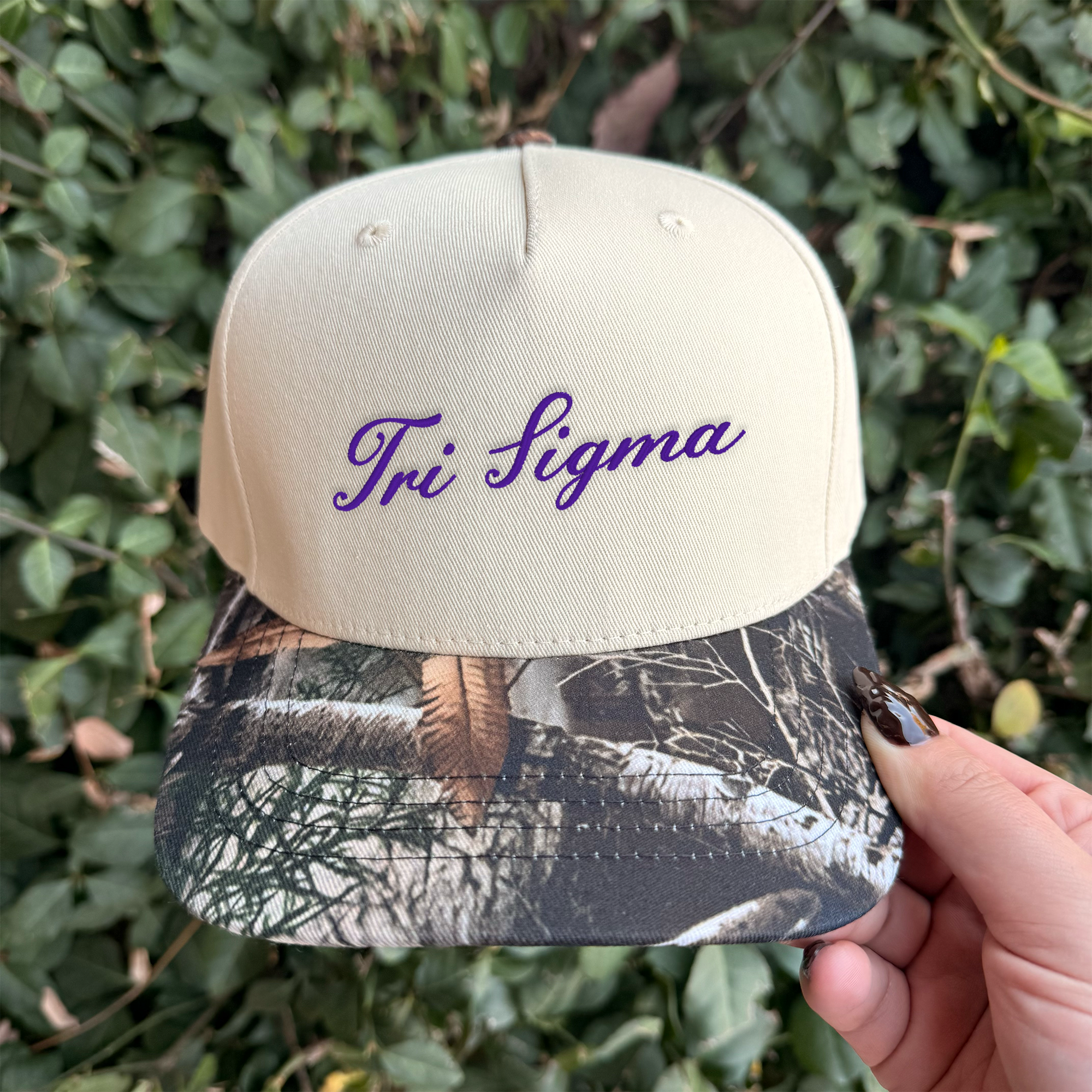 Sigma Sigma Sigma Embroidered Camo Hat – Two Toned Hat