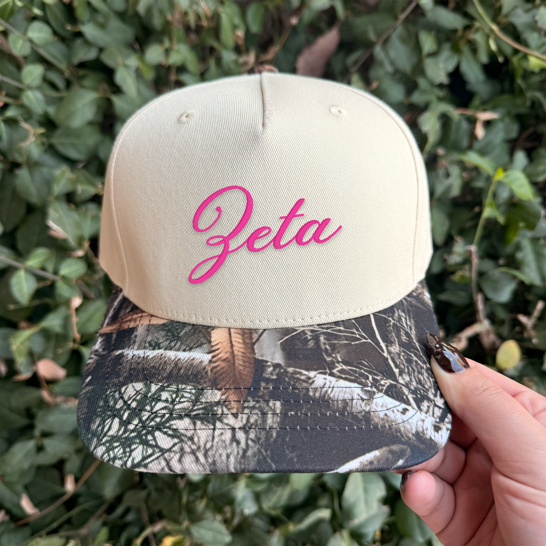 Zeta Tau Alpha Embroidered Camo Hat – Two Toned Hat