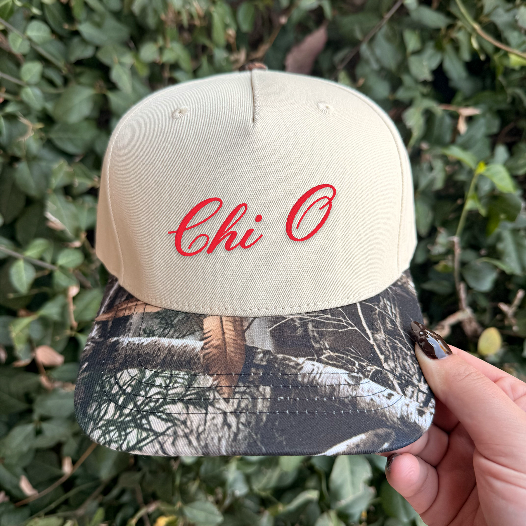 Chi Omega Embroidered Camo Hat – Two Toned Hat