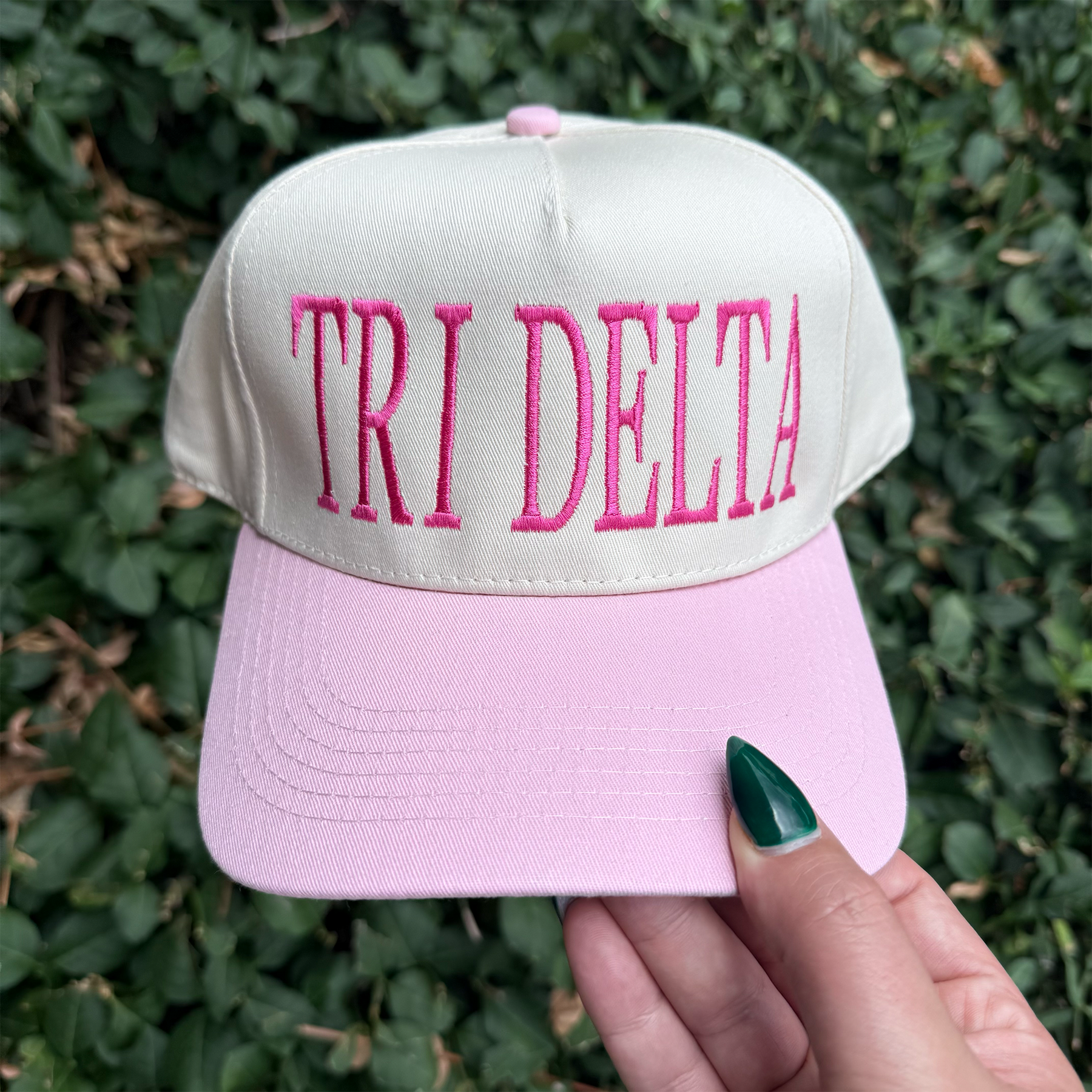 The Delta Delta Delta hat is a vintage two toned hat designed with style and comfort. Ideal for casual sorority wear or special events like bid day, big little reveal and more!