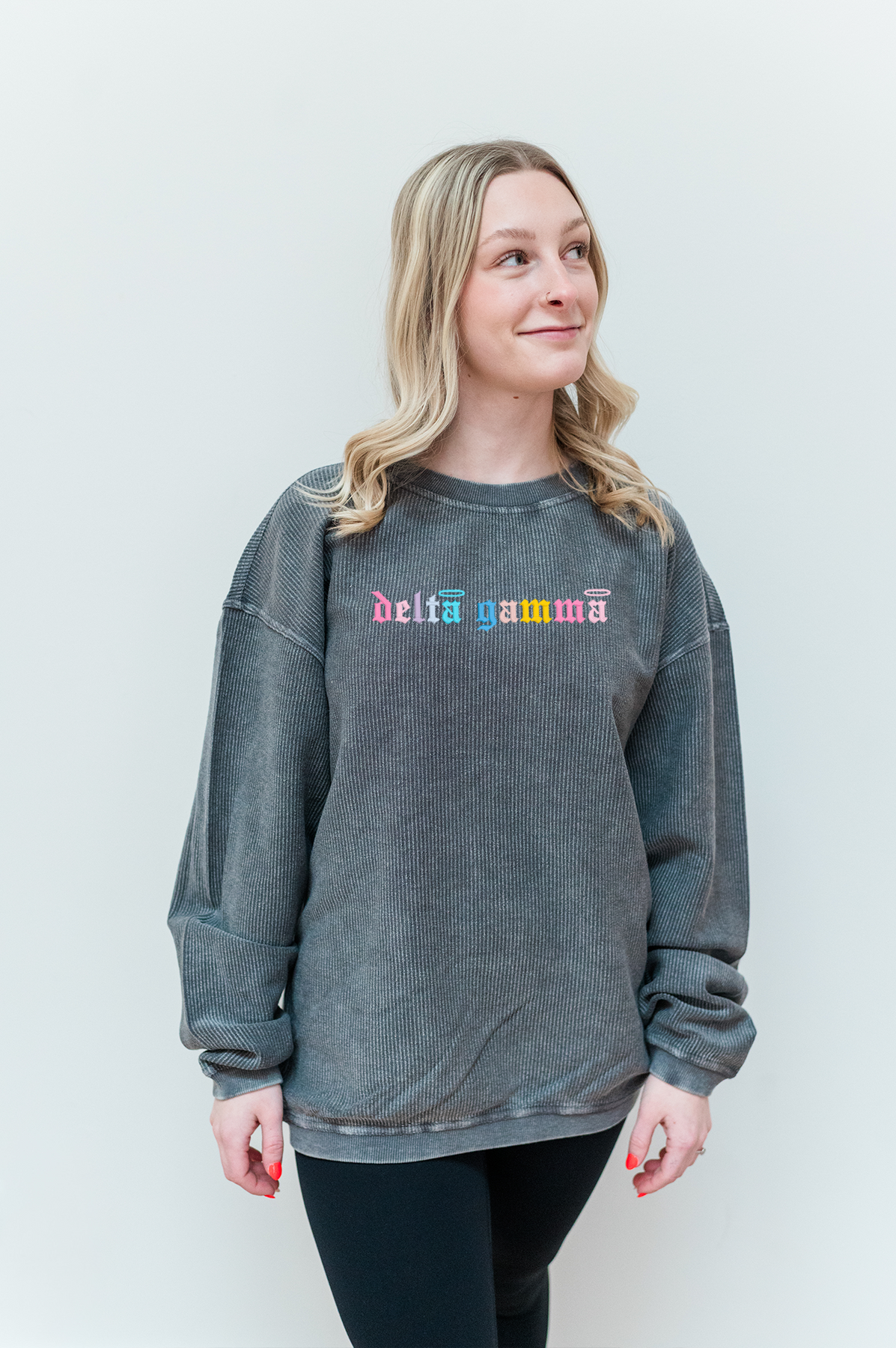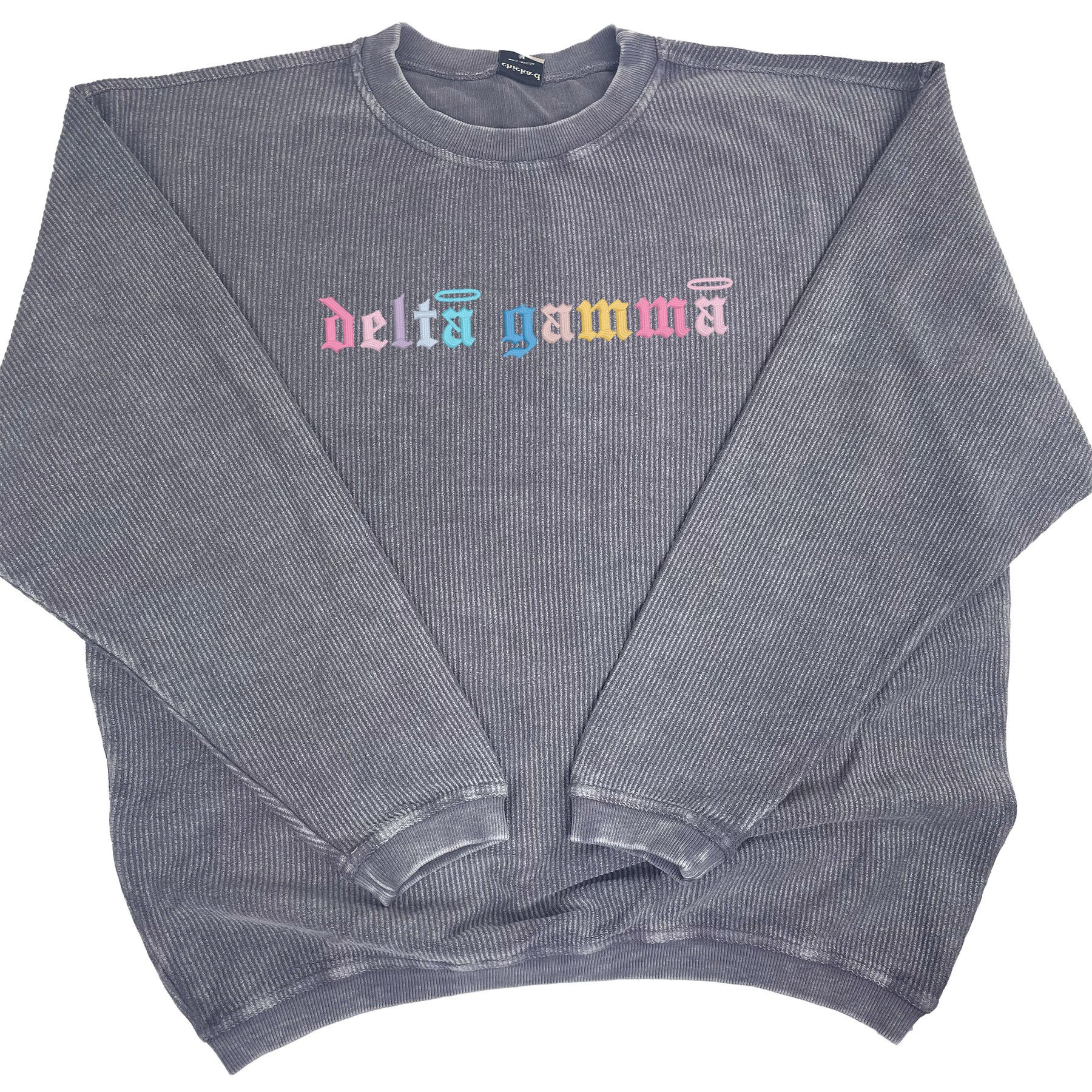 Delta Gamma Corded Crewneck Sweatshirt - Embroidered Old English Font