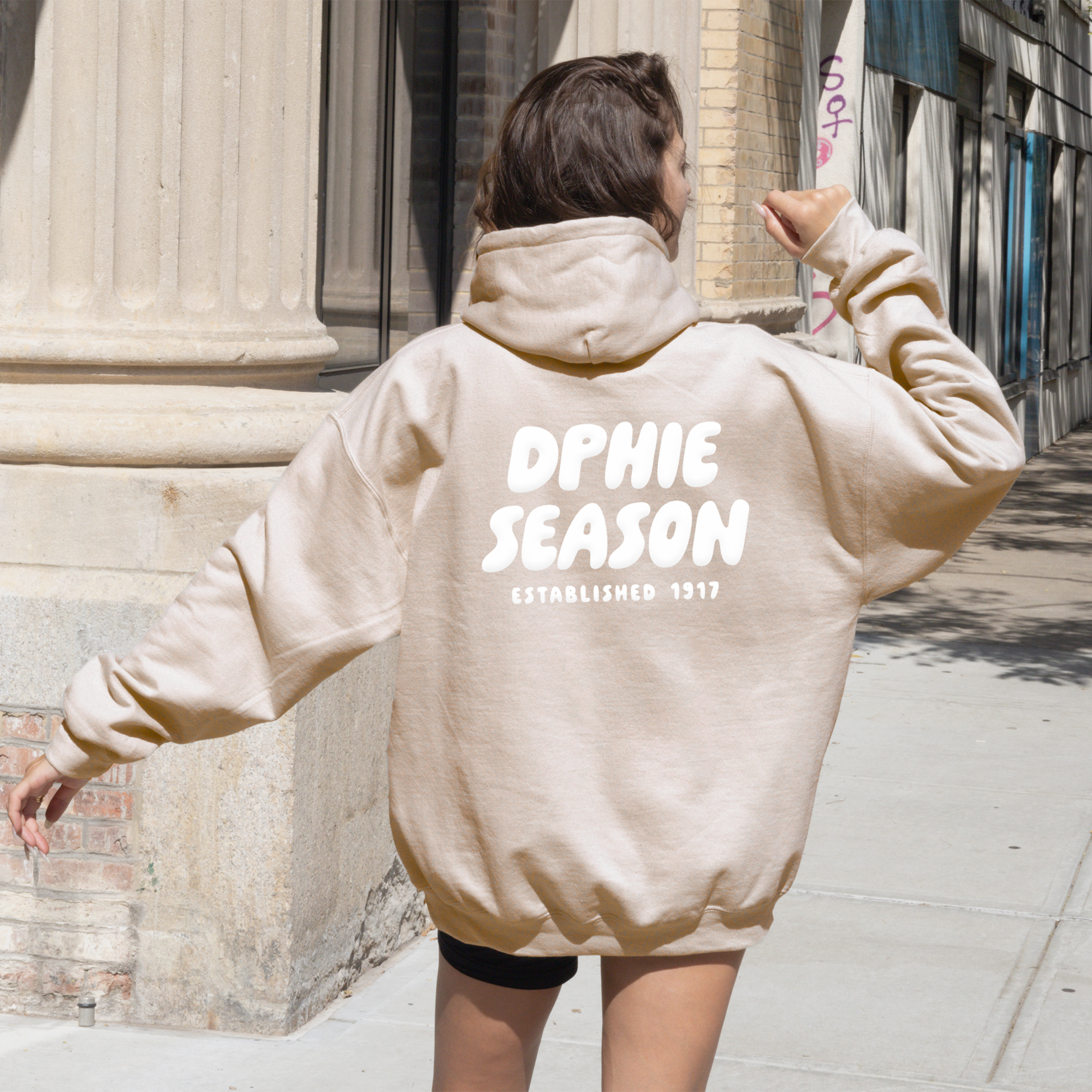 Delta Phi Epsilon Tan Hoodie with Puff Design - Foxy Season