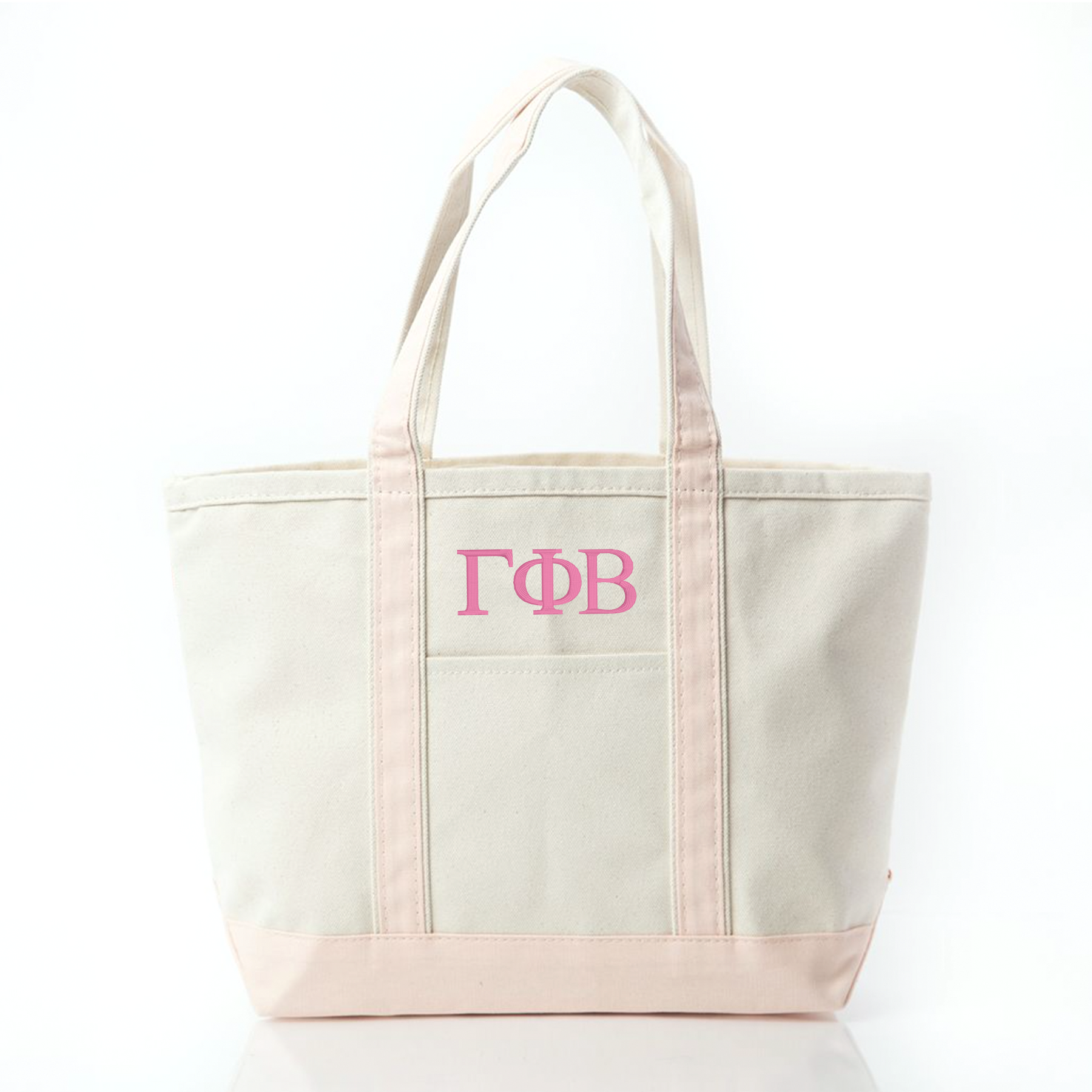 Lightweight and stylish, this reusable boat tote is the perfect over-the-shoulder bag for any new member. A thoughtful gift for Bid Day, Big & Little reveal, birthdays, initiation, or just because it's a cute and practical pick for events, class, meetings, or everyday use!