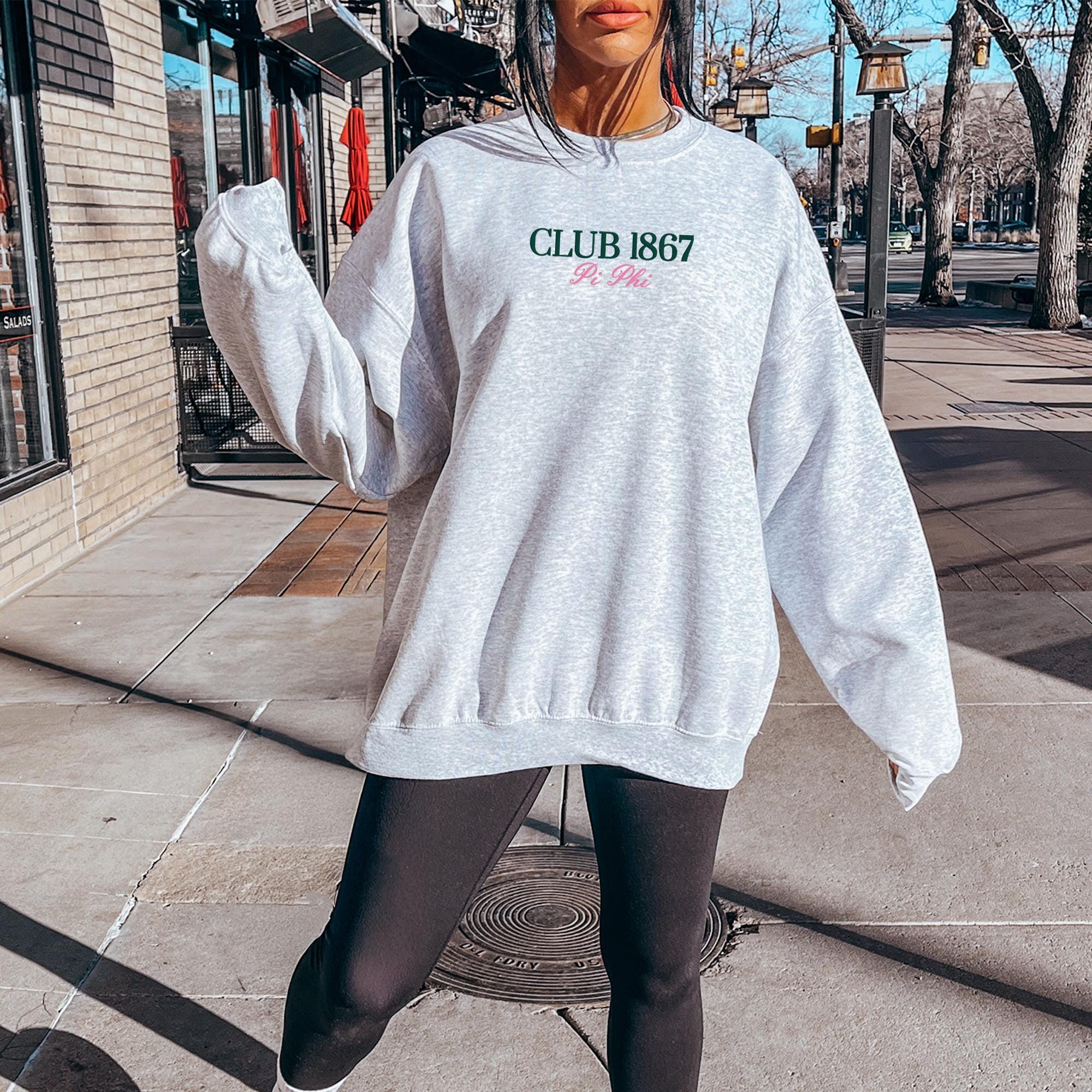 Pi Beta Phi Tennis Club - Embroidered & Printed Preppy Sorority Sweater - Ash