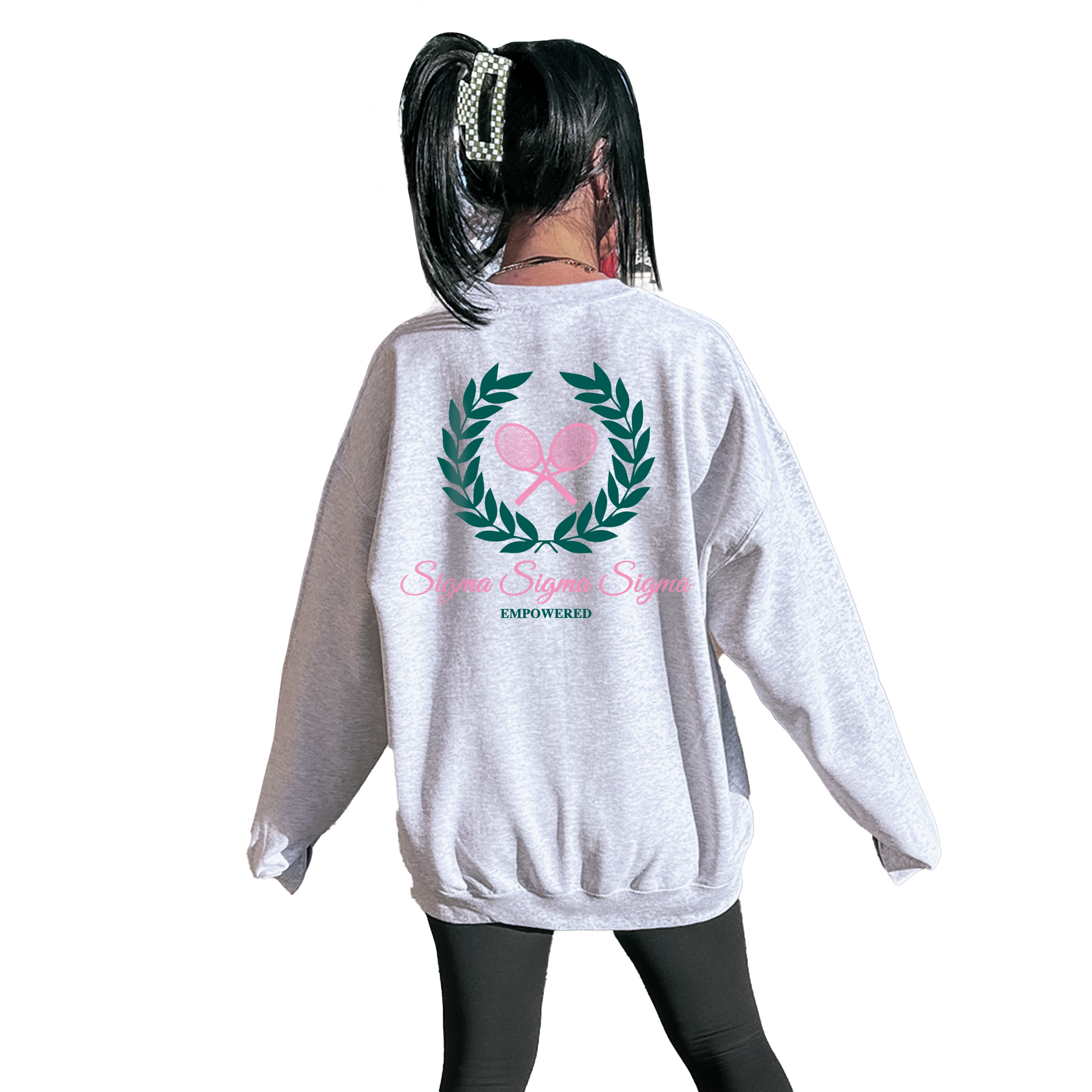 Sigma Sigma Sigma Tennis Club - Embroidered & Printed Preppy Sorority Sweater - Ash