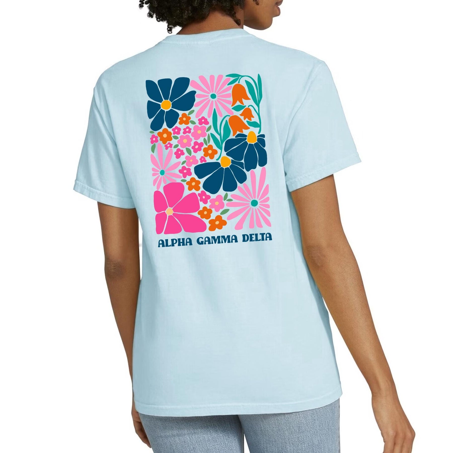 Alpha Gamma Delta Boho Floral T-Shirt - Alpha Gam - Chambray