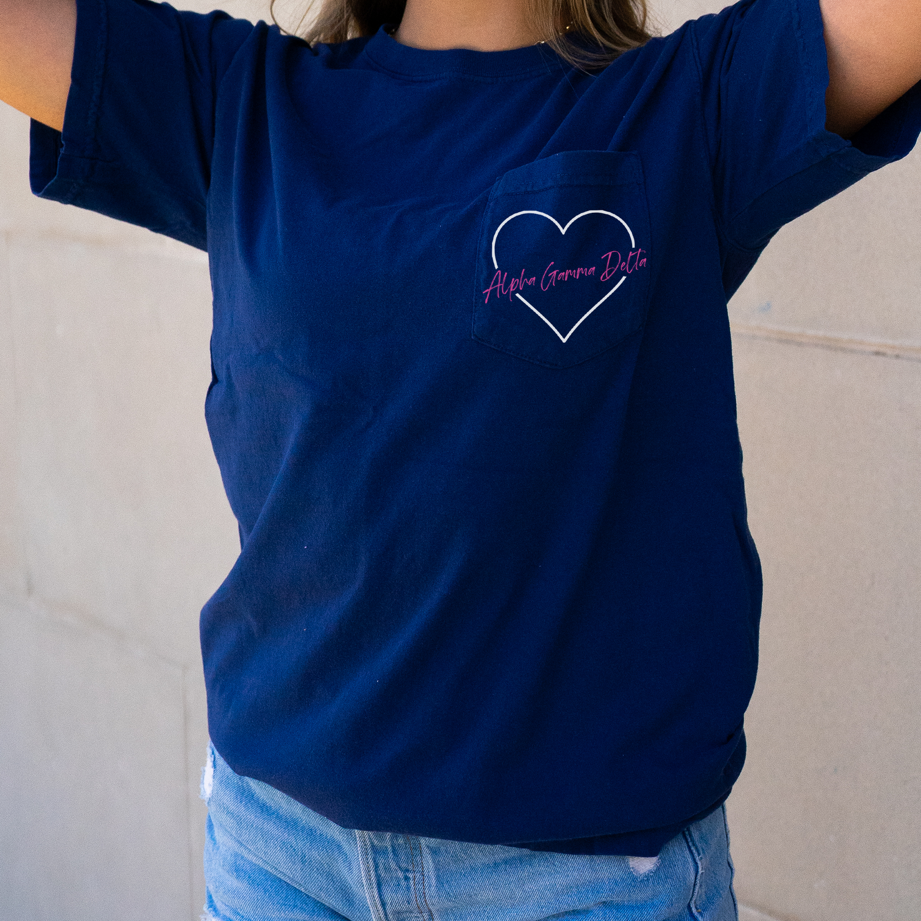 Alpha Gamma Delta Heart Pocket T-Shirt - Navy