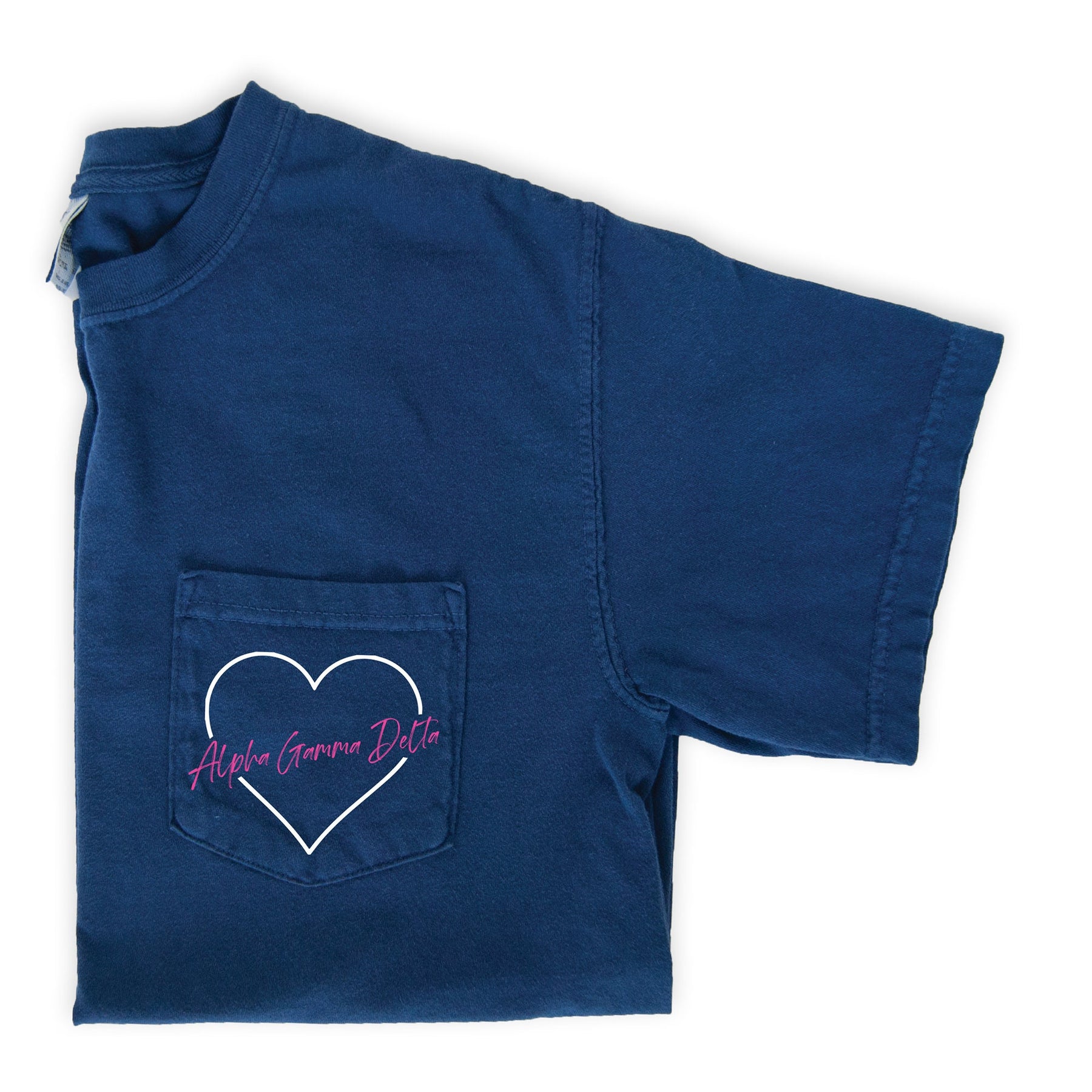 Alpha Gamma Delta Heart Comfort Colors Pocket Tee Shirt