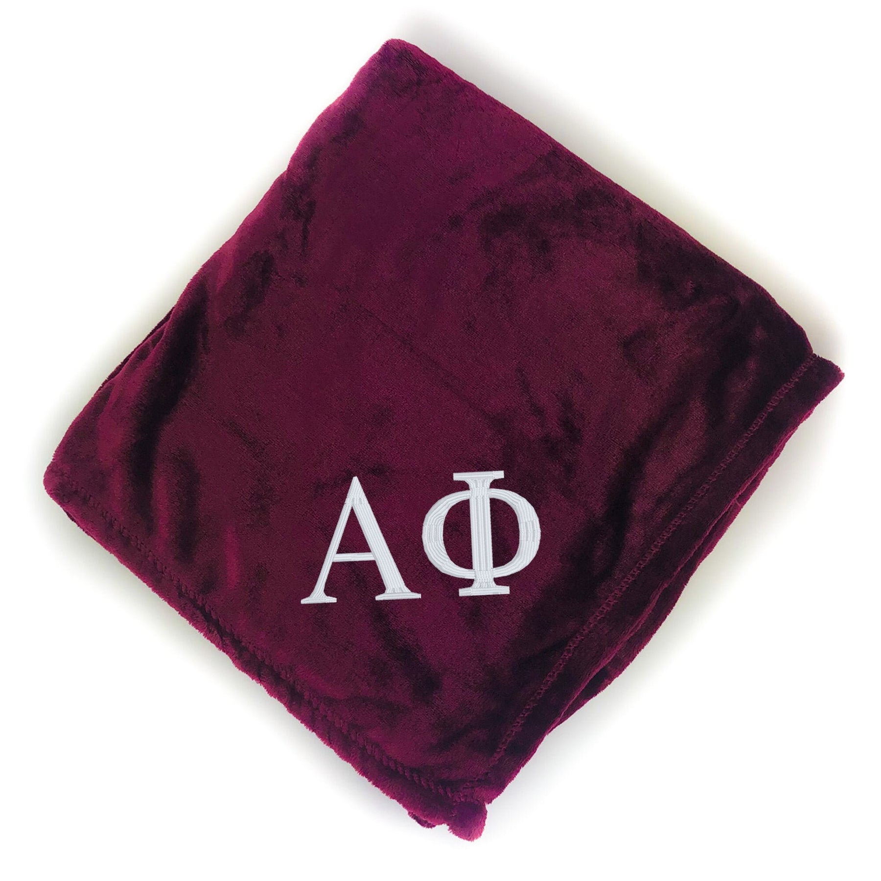 Alpha Phi Plush Throw Blanket - Burgundy/White - Go Greek Chic