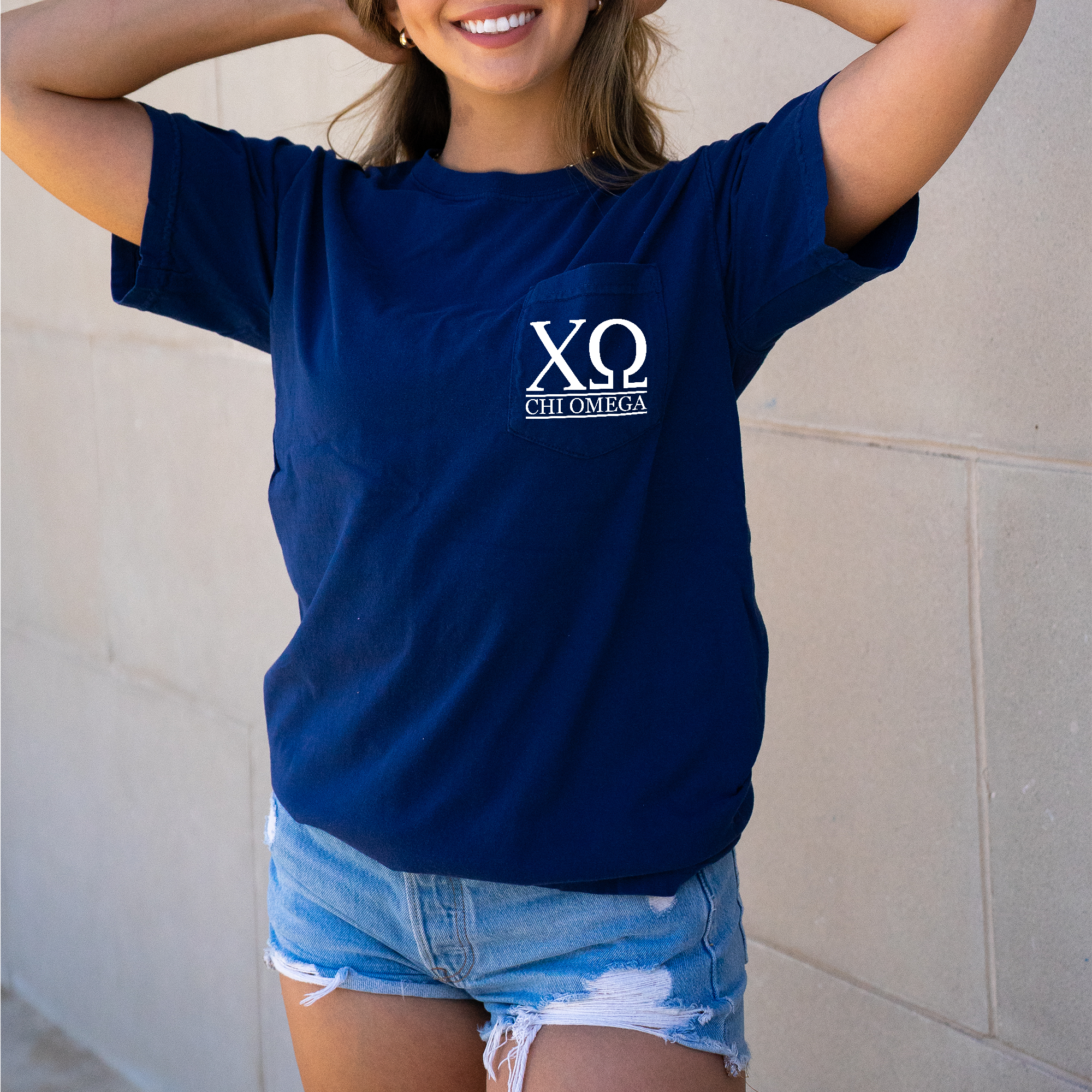 Chi Omega Comfort Colors Pocket Tee Shirt