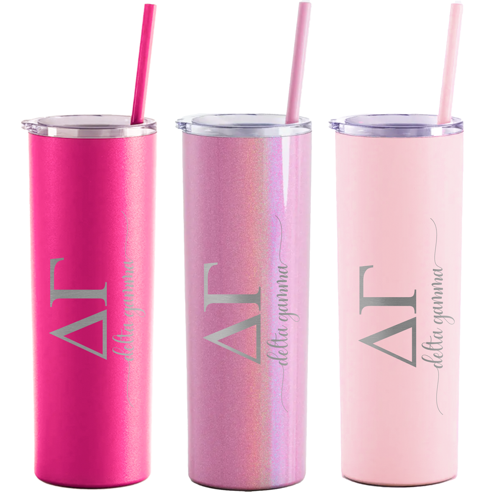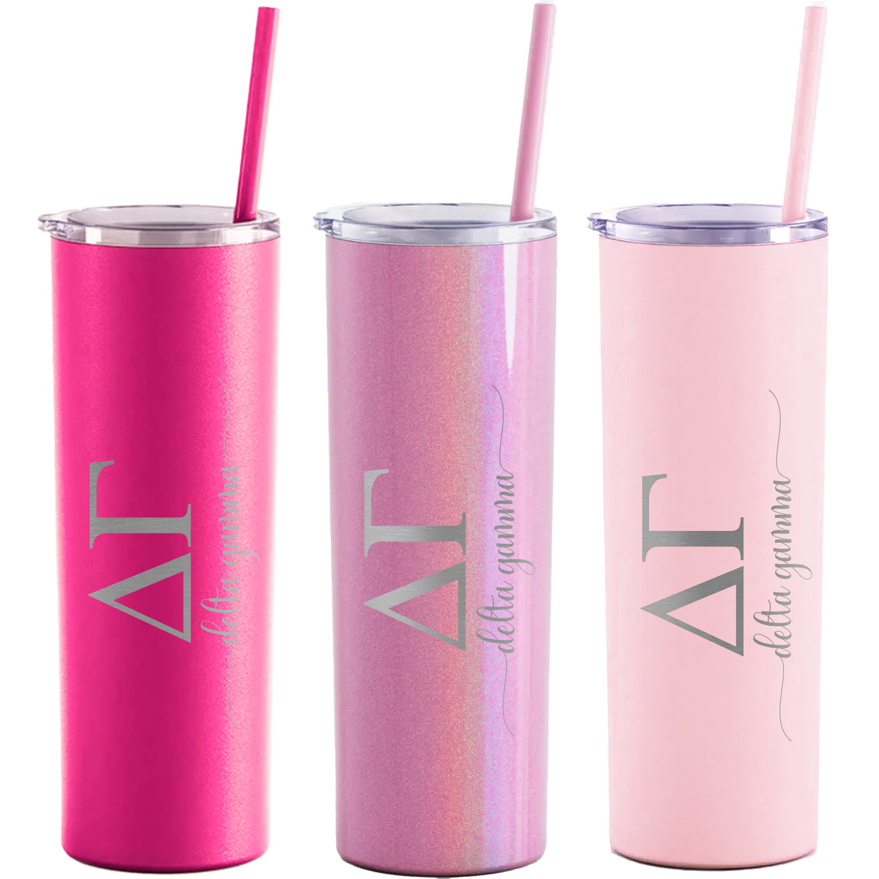 Delta Gamma Greek Letter Script Skinny Tumbler with Straw