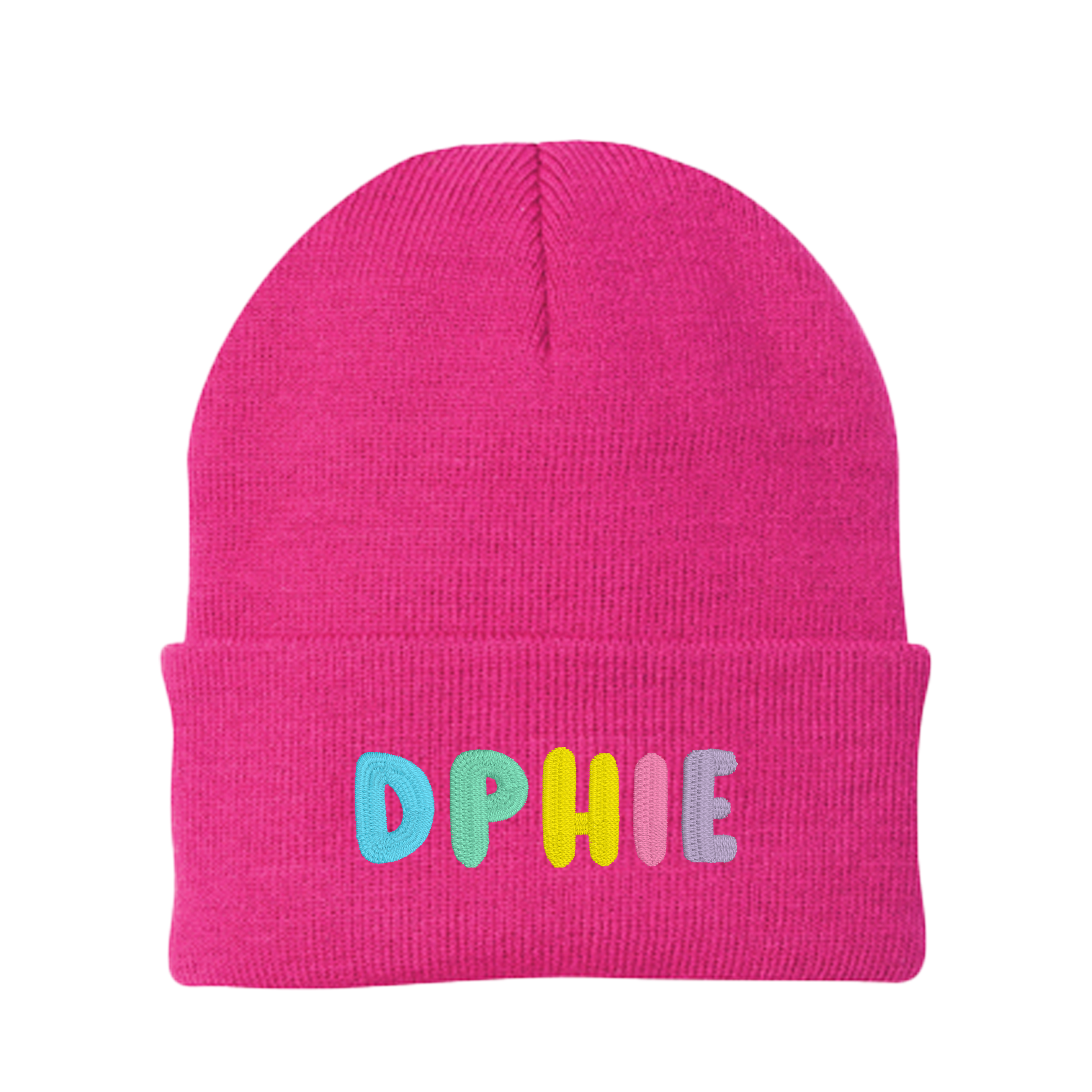 Delta Phi Epsilon Bubble Embroidered Beanie - DPHIE Pastel