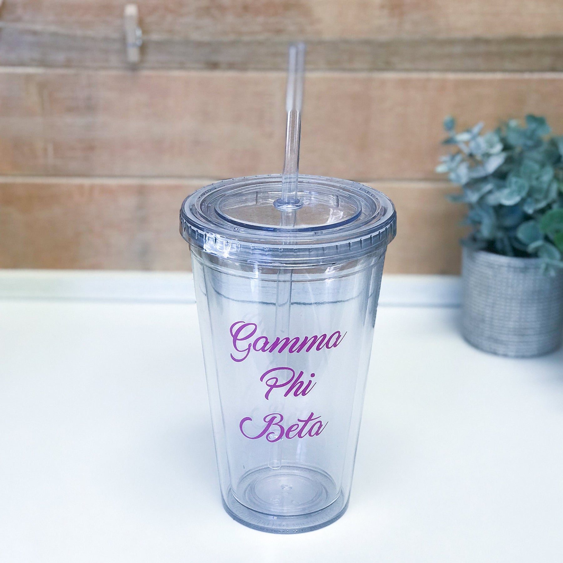 These 16 oz. clear double wall acrylic tumblers with straws are a perfect gift for any Gamma Phi Beta member!