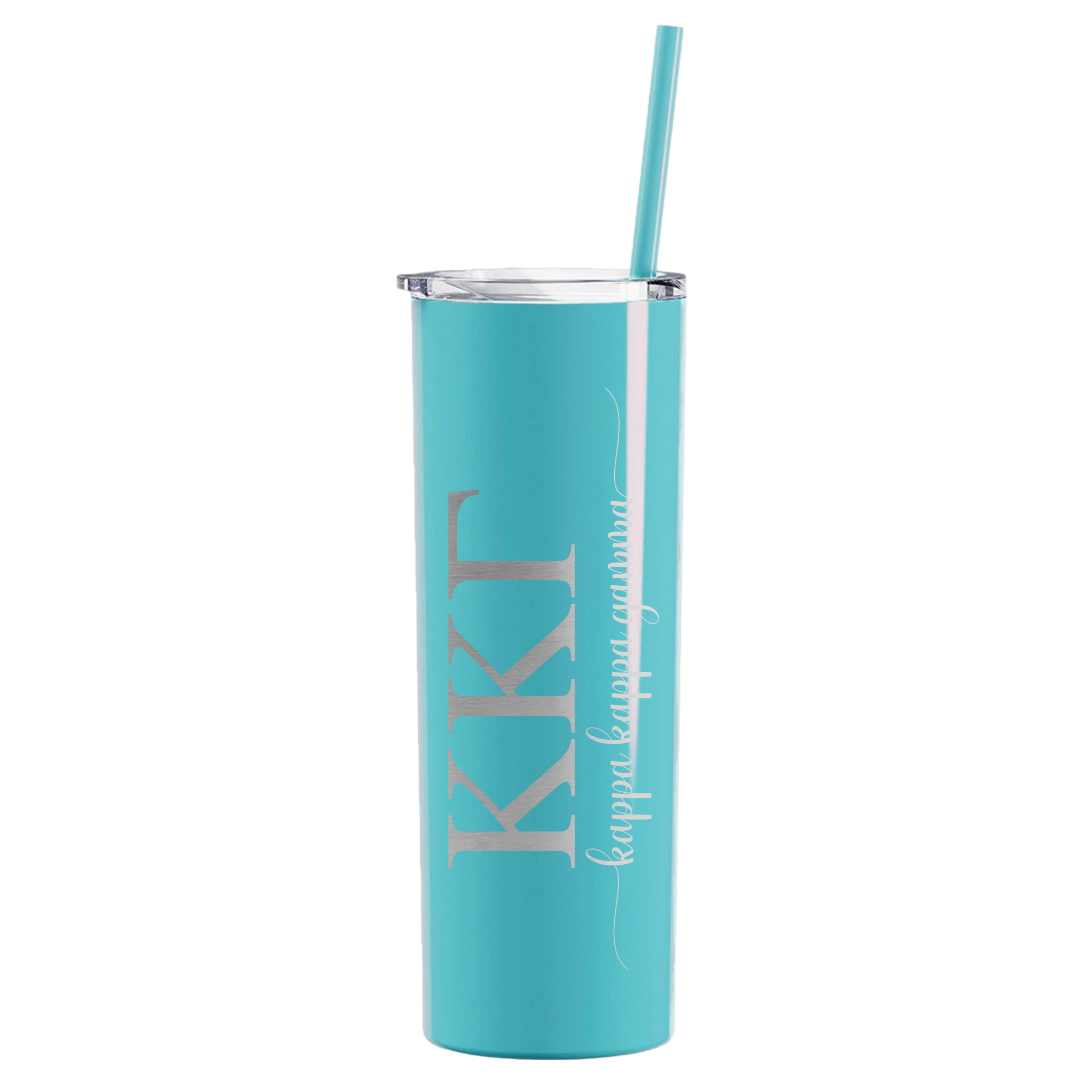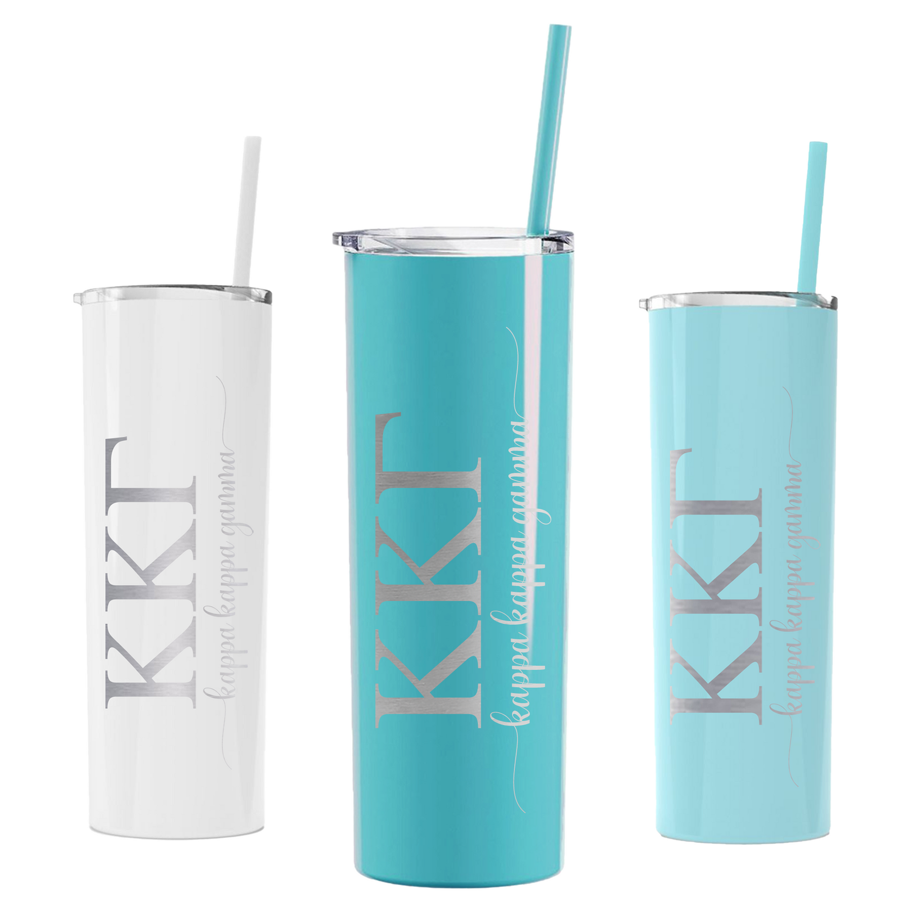 Kappa Kappa Gamma Greek Letter Script Skinny Tumbler with Straw
