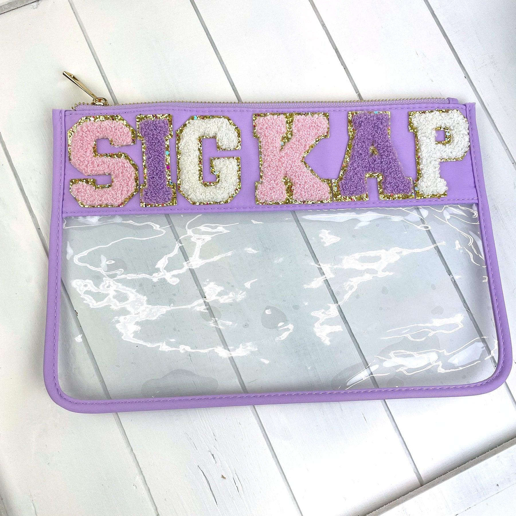 Sigma Kappa Chenille Patch Bag, Sig Kap, Purple Zip Travel Bag, Big Little Gift, Sorority Gift