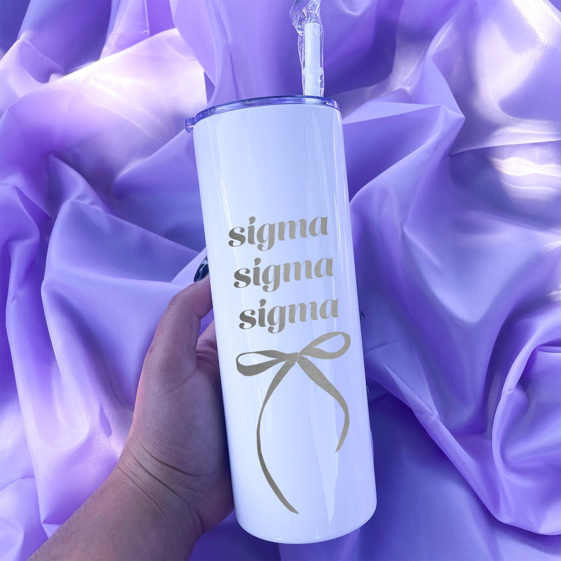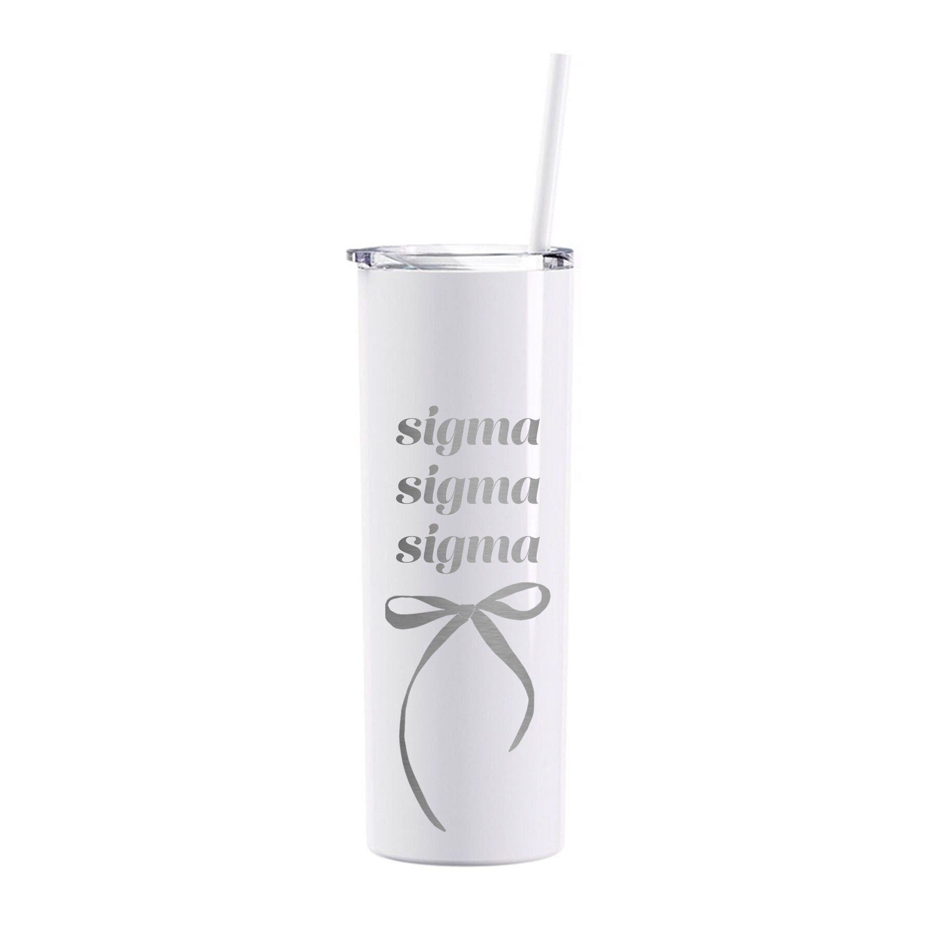 Sip your favorite drink in style with our Sigma Sigma Sigma Coquette Bow Tumbler! This 20oz tumbler is perfect for any sorority occasion, from bid day to tailgates to everyday use. The coquette bow design adds a touch of charm, while the included matching straw makes it easy to stay hydrated on-the-go.