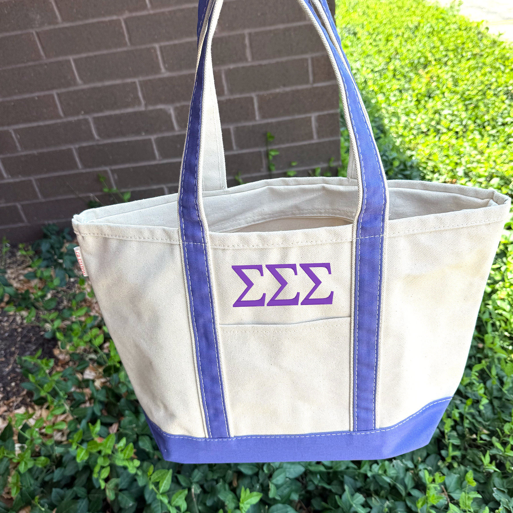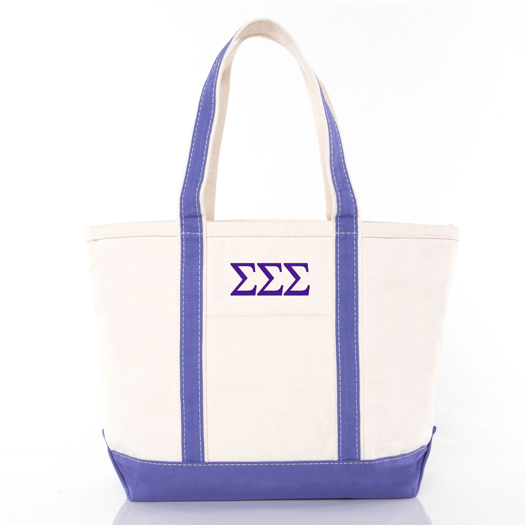 Lightweight and stylish, this reusable boat tote is the perfect over-the-shoulder bag for any new member. A thoughtful gift for Bid Day, Big & Little reveal, birthdays, initiation, or just because it's a cute and practical pick for events, class, meetings, or everyday use!