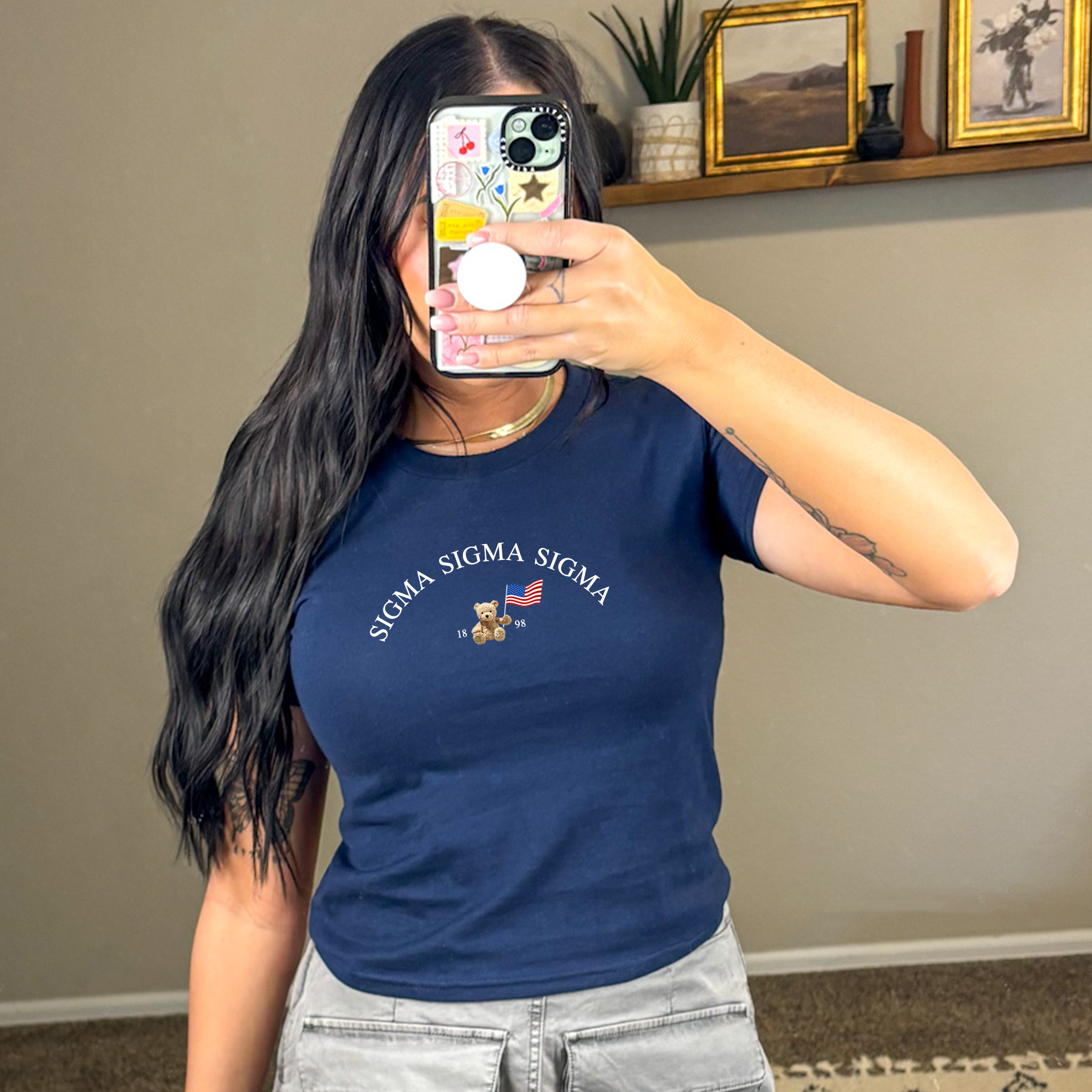 Sigma Sigma Sigma Teddy Bear with Flag - Baby Tee